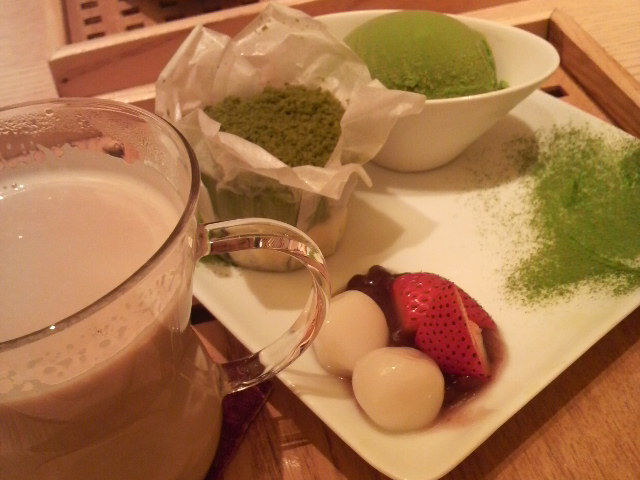 あと抹茶アイスと白玉とイチゴとあんこと、