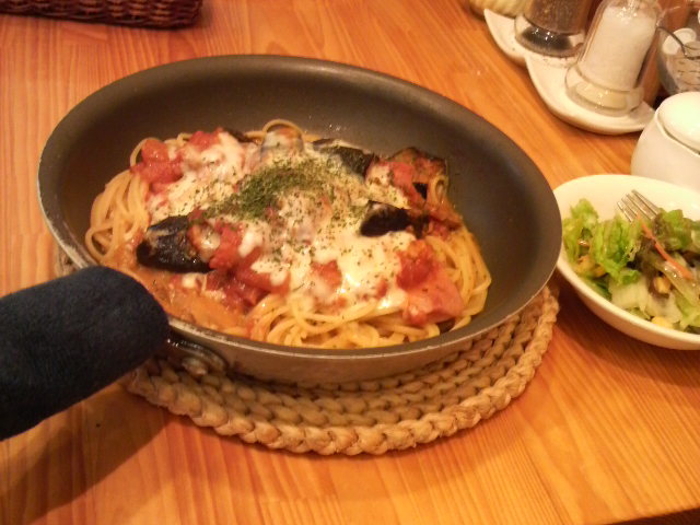 池袋まで迎えに行って、うちの近所のパスタ専門店でお昼。